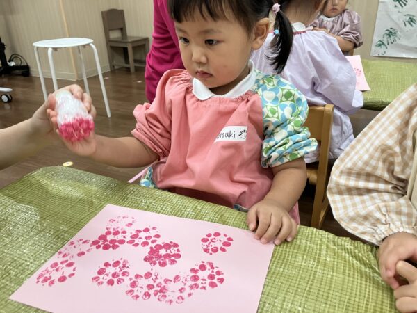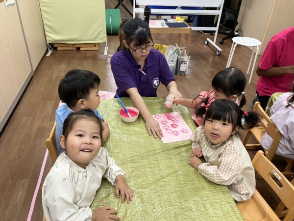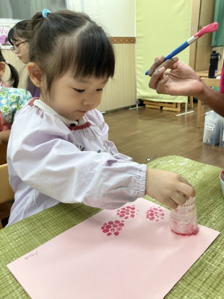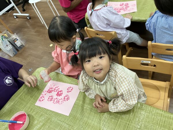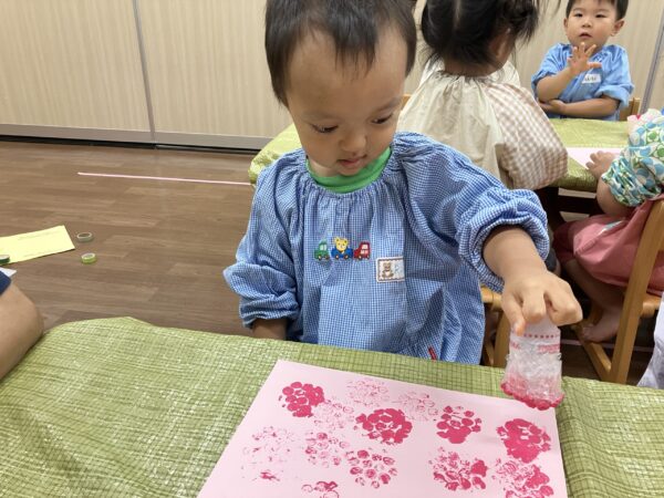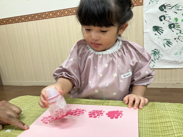 たくさんスタンプして、おじいちゃんおばあちゃんへお花を作りました🌼