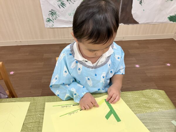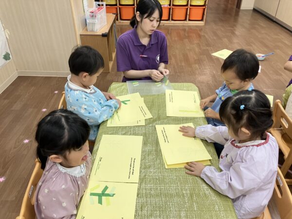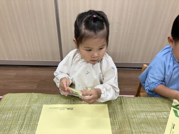 先生の説明をよく聞いて、線に沿って上手に貼れましたね✨